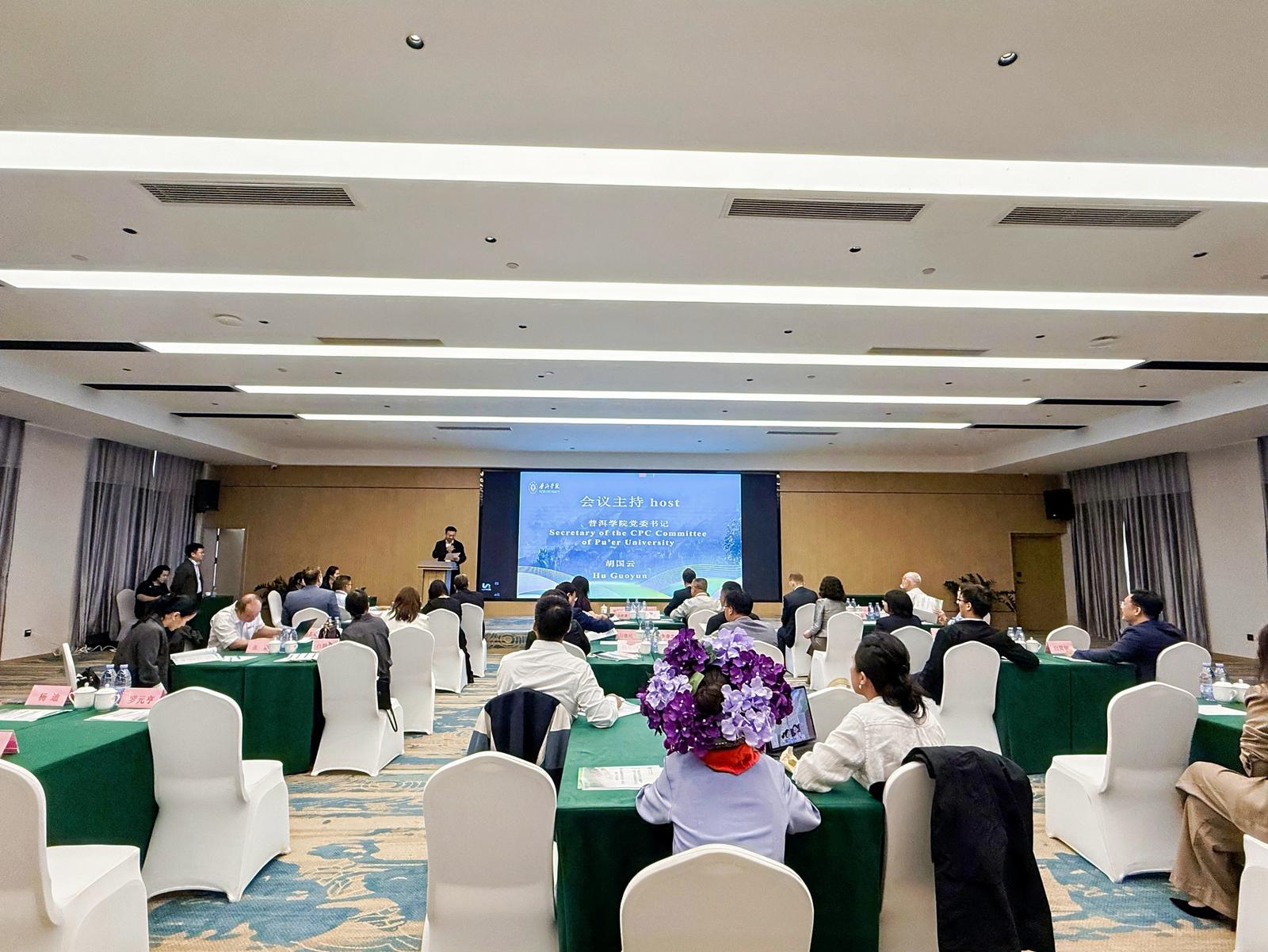 会议伊始播放的《识·景迈山——人与自然生命共同体的典范》宣传视频,生动呈现了景迈山“山、茶、人共生”的独特生态文化景观。杨斌在欢迎辞中指出,2023年9月,“普洱景迈山古茶林文化景观”成功列入《世界遗产名录》,成为全球首个茶主题世界文化遗产,其核心价值在于承载了多民族共生智慧与深厚生态伦理。他还强调,普洱学院通过搭建科研平台、组织师生深入一线,持续为景迈山的科学保护与可持续发展提供智力支持。