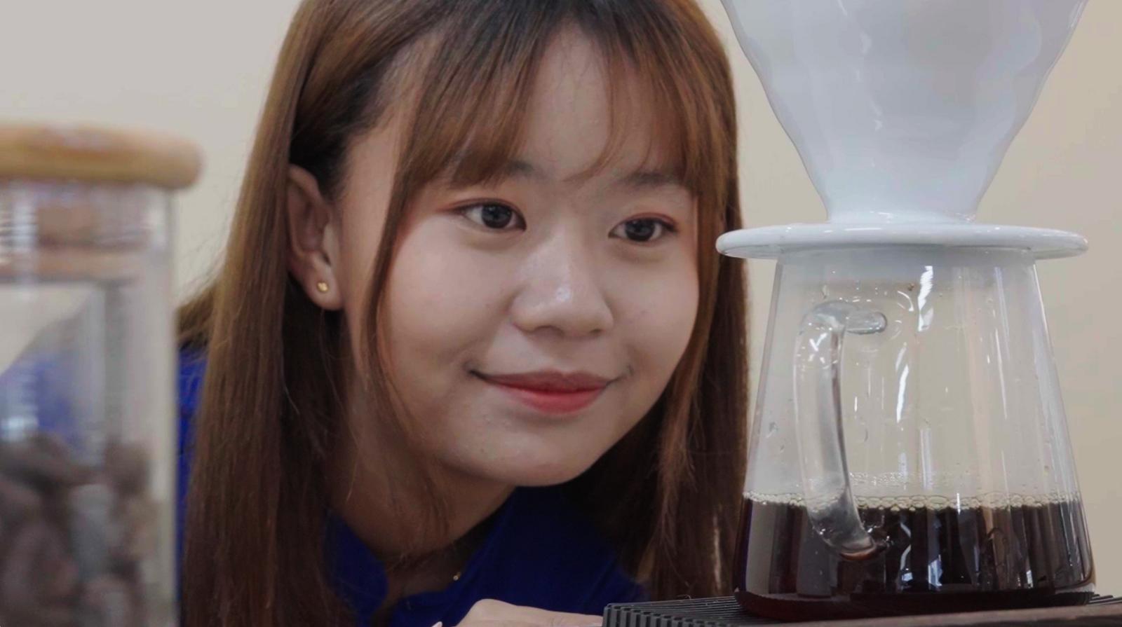 在普洱学院静谧的咖啡课教室内,缅甸留学生张美紫的手稳稳悬于滤杯之上,水流如细线注入杯中,氤氲雾气裹挟着熟悉的芬芳升腾——这份辗转千里的咖啡豆,刚从缅甸的家园抵达她手中,此刻正化作一封无比具体的“家书”。每一粒咖啡豆,都是家乡精心挑选的礼物。每一次注水,都是对家乡晨间炊烟与父母劳作的无声复刻。张美紫惬意享受着用家乡的咖啡豆做手冲的时刻,在她记忆深处,这香气弥漫在缅甸清晨每一个家庭的角落,是唤醒一日劳作的序曲,更是待客时不言自明的真诚礼敬。