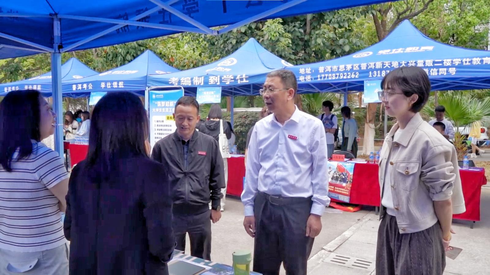 4月10日,云南省2026届高校毕业生滇南专场招聘会在普洱学院举办。校领导及相关负责人深入现场,与企业代表就岗位需求进行交流,并与毕业生面对面交谈,引导大家树立正确的择业观、把握就业良机。
